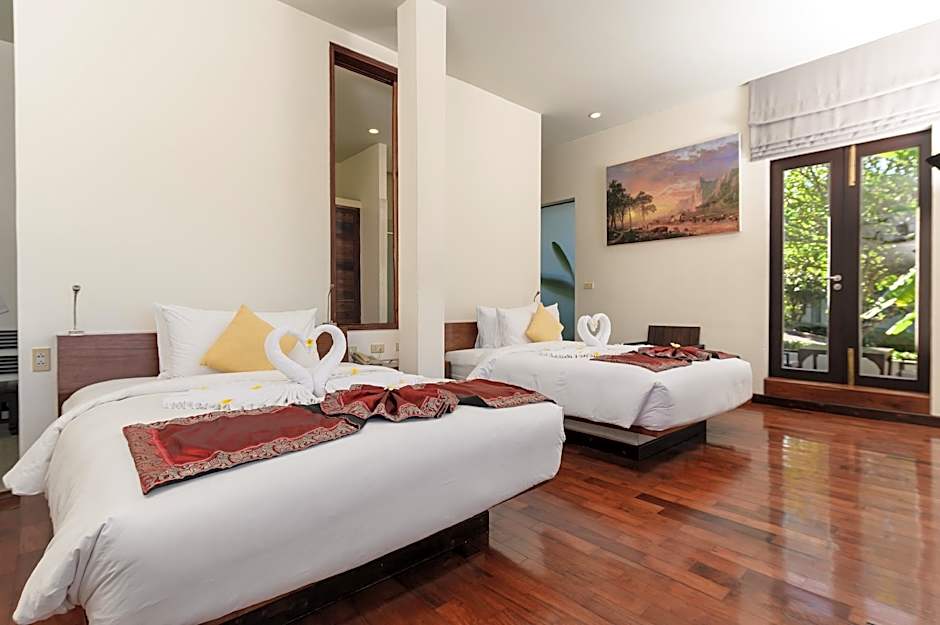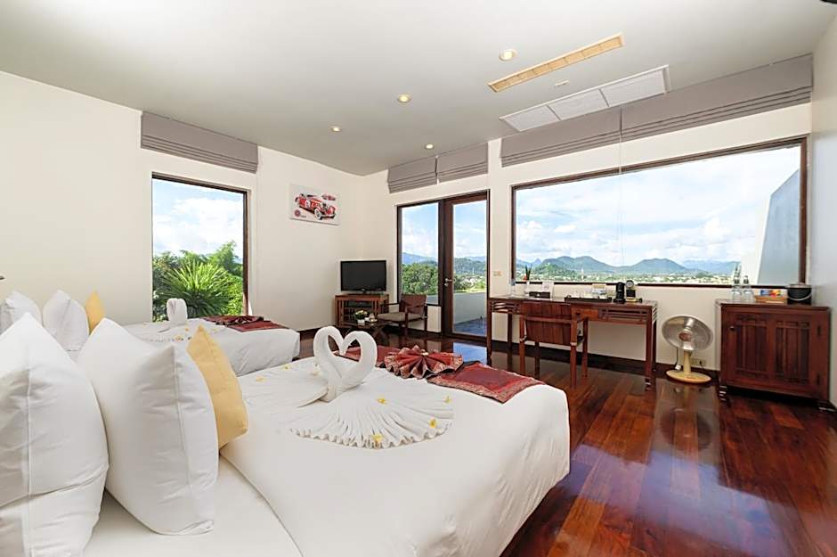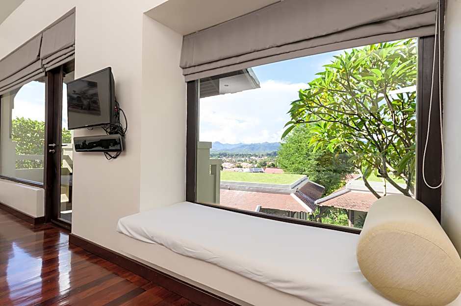 Step through the large entrance into a Terrace Twin Room with a view of mountaintops peeking above a rim of fog, Luang Prabang city below, and Mount Phousi Temple shining behind. The spacious 84-sqm Terrace Twin Room sits on the hillside in front of the Infinity Pool. Picture windows stretch across the front and wrap around a corner to the sizable outdoor terrace. From here, you can enjoy the vista with morning coffee or tea, or in the evening during a private dinner. Back inside, the panorama appears everywhere, from the comfy twin bed, day bed, large desk, and deep bathtub that is set in a room-wide wardrobe area with his-and-hers vanities, rain shower, and private toilet. Picture paradise from every angle during your stay in a Terrace Twin Room.